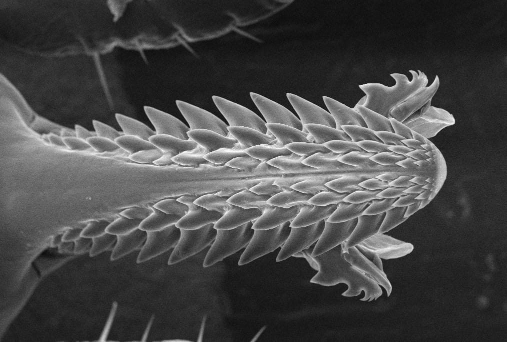 Kleszcze pospolite mają również wyraźnie wyodrębniony hypostom – aparat gębowy, na którym znajdują się haczyki.